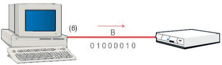 Στην ασύγχρονη μετάδοση δεδομένων (asynchronous data transmission) επιτυγχάνεται συγχρονισμός σε κάθε μεταδιδόμενη ψηφιολέξη. Στη συσκευή εκπομπής, ένας – ένας οι χαρακτήρες πλαισιώνονται από bits χρονισμού που βοηθούν τη συσκευή λήψης να συγχρονιστεί με τον πομπό.