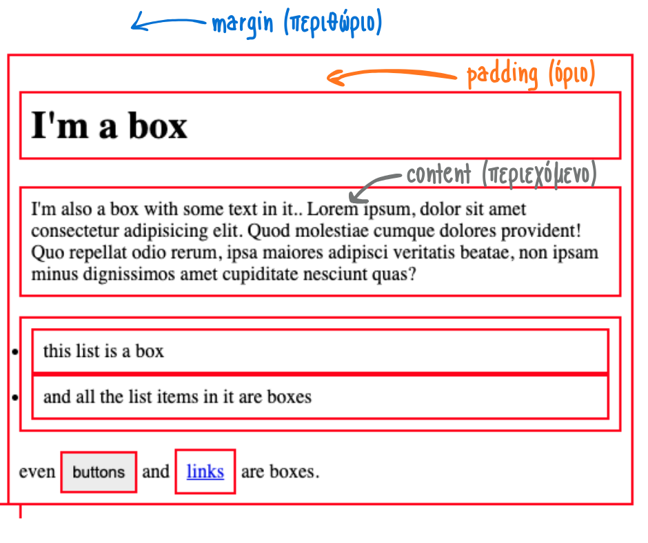 Παράδειγμα ολοκληρης σελίδας με πολλά στοιχεία και τα box-model τους: