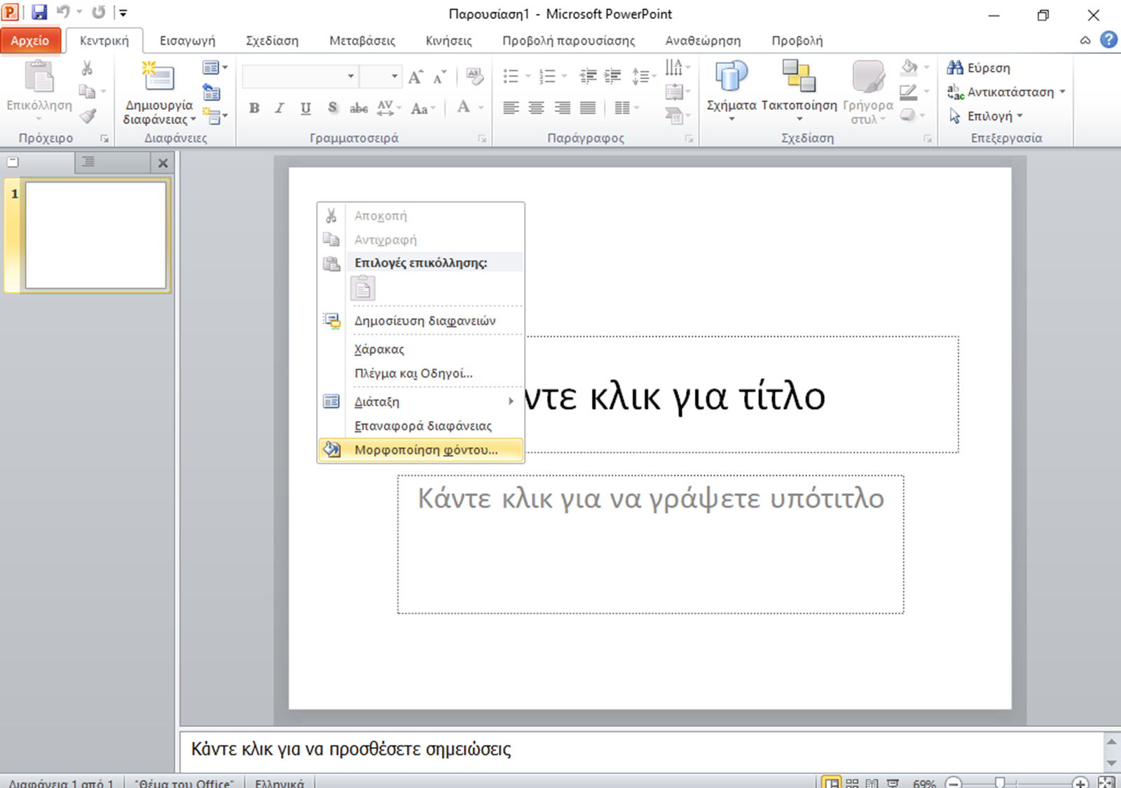 Εικόνα: Βήμα 1ο - Δεξί κλικ > Μορφοποίηση Φόντου