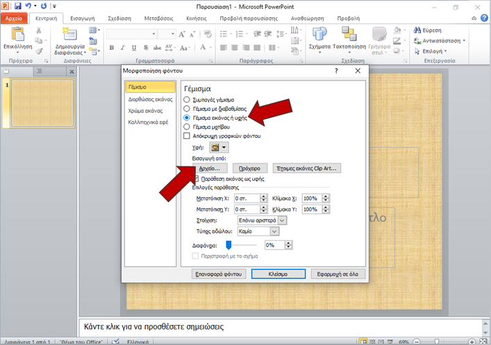Εικόνα: Βήμα 3ο - Γέμισμα εικόνας ή υφής > Αρχείο > Επιλογή Εικόνας